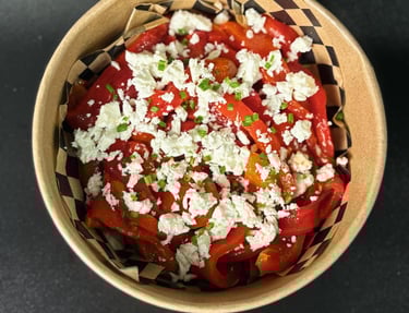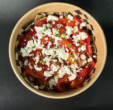 Pimientos rojos con queso feta, cebollino y ajo asado